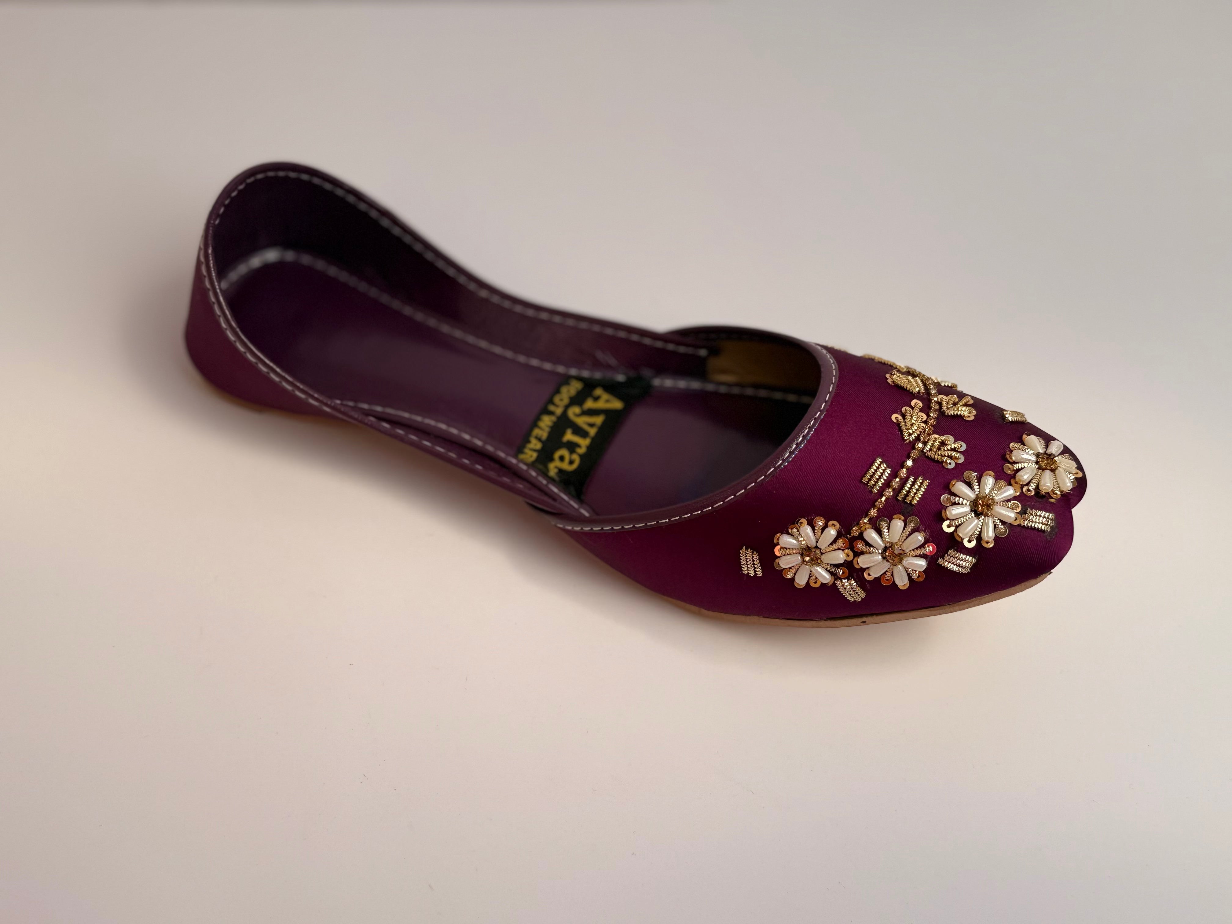 GULBAHAAR β Royale Violet Khussa with Soft Gold & Pearl Detailing