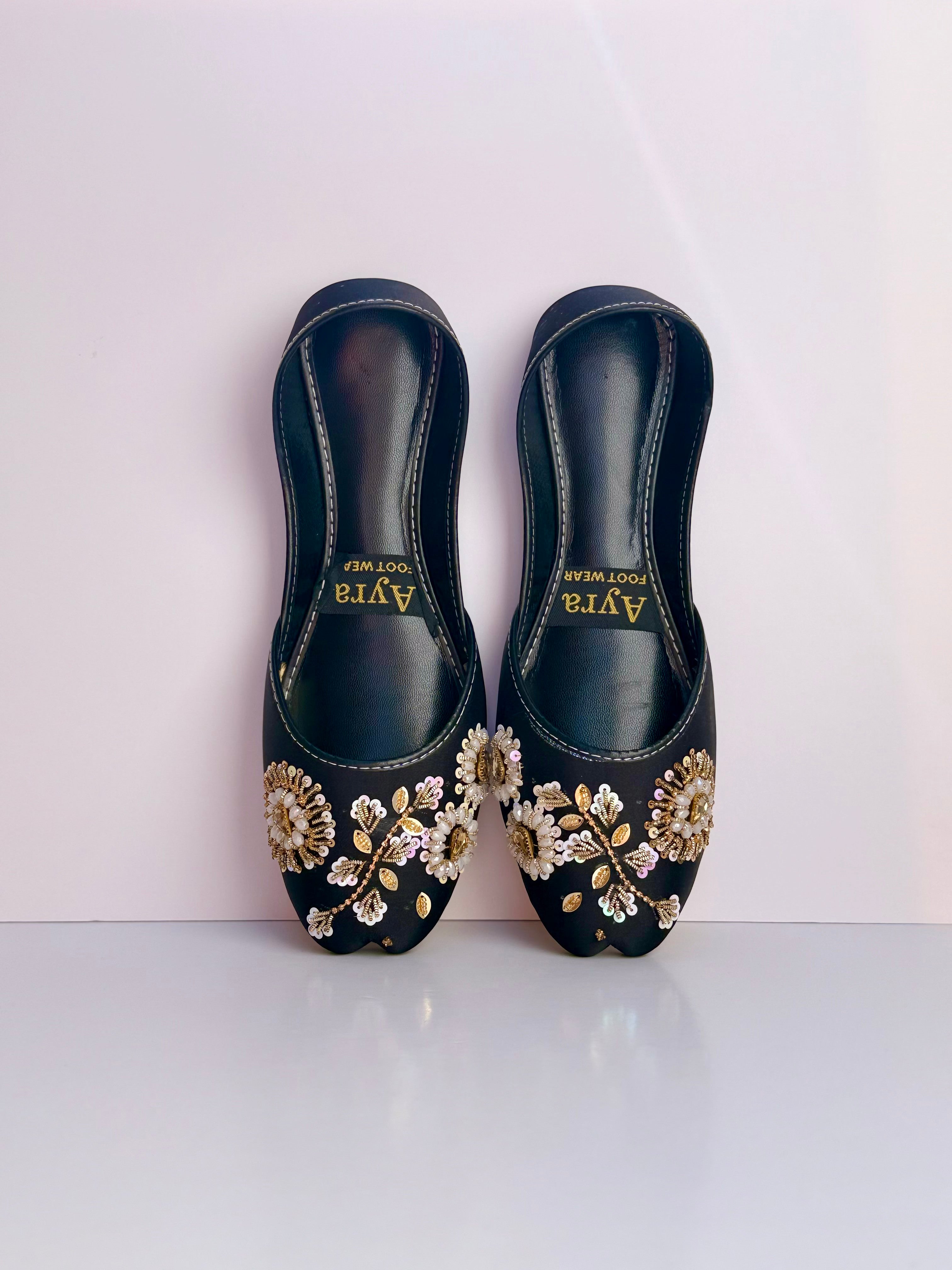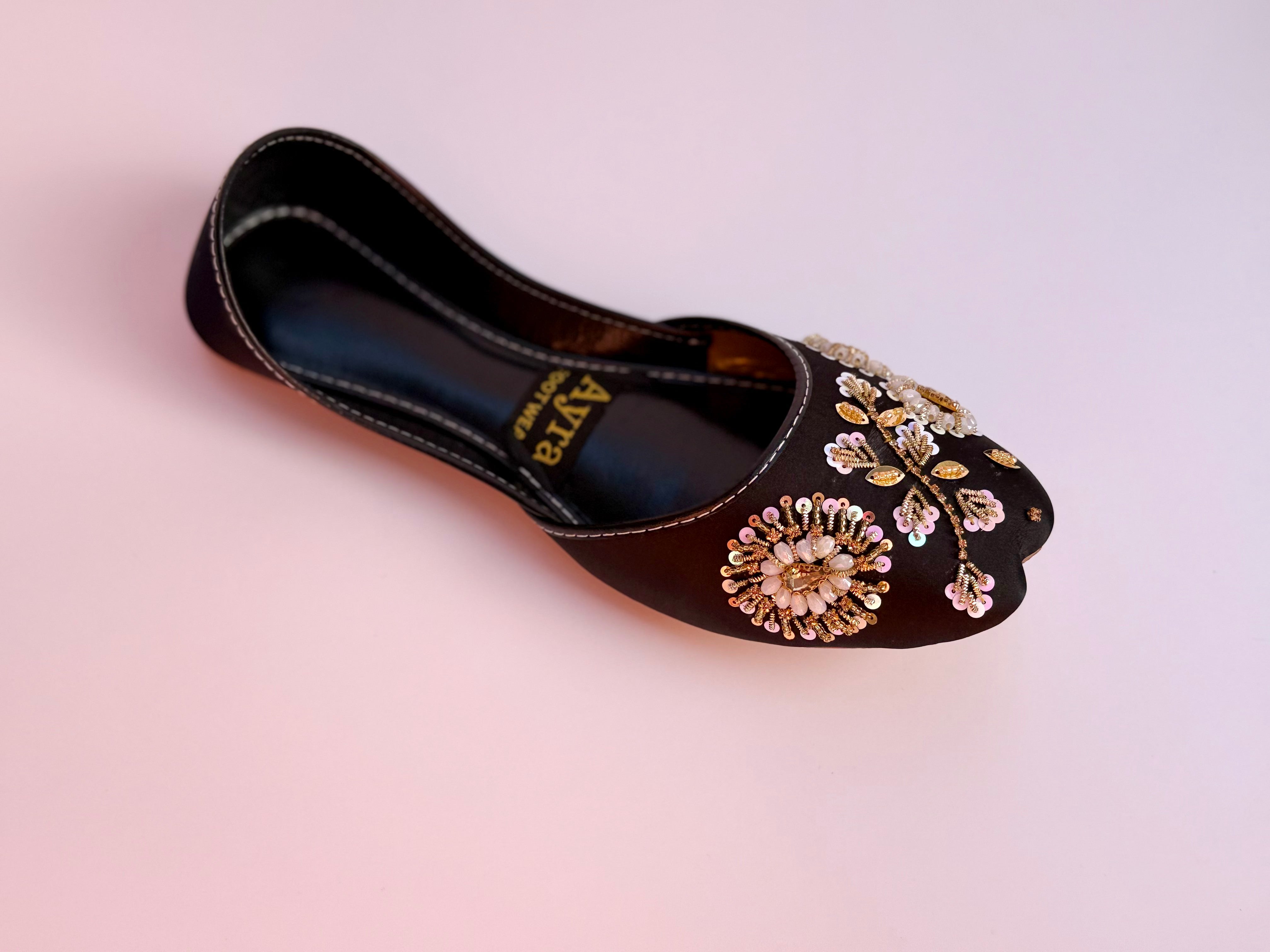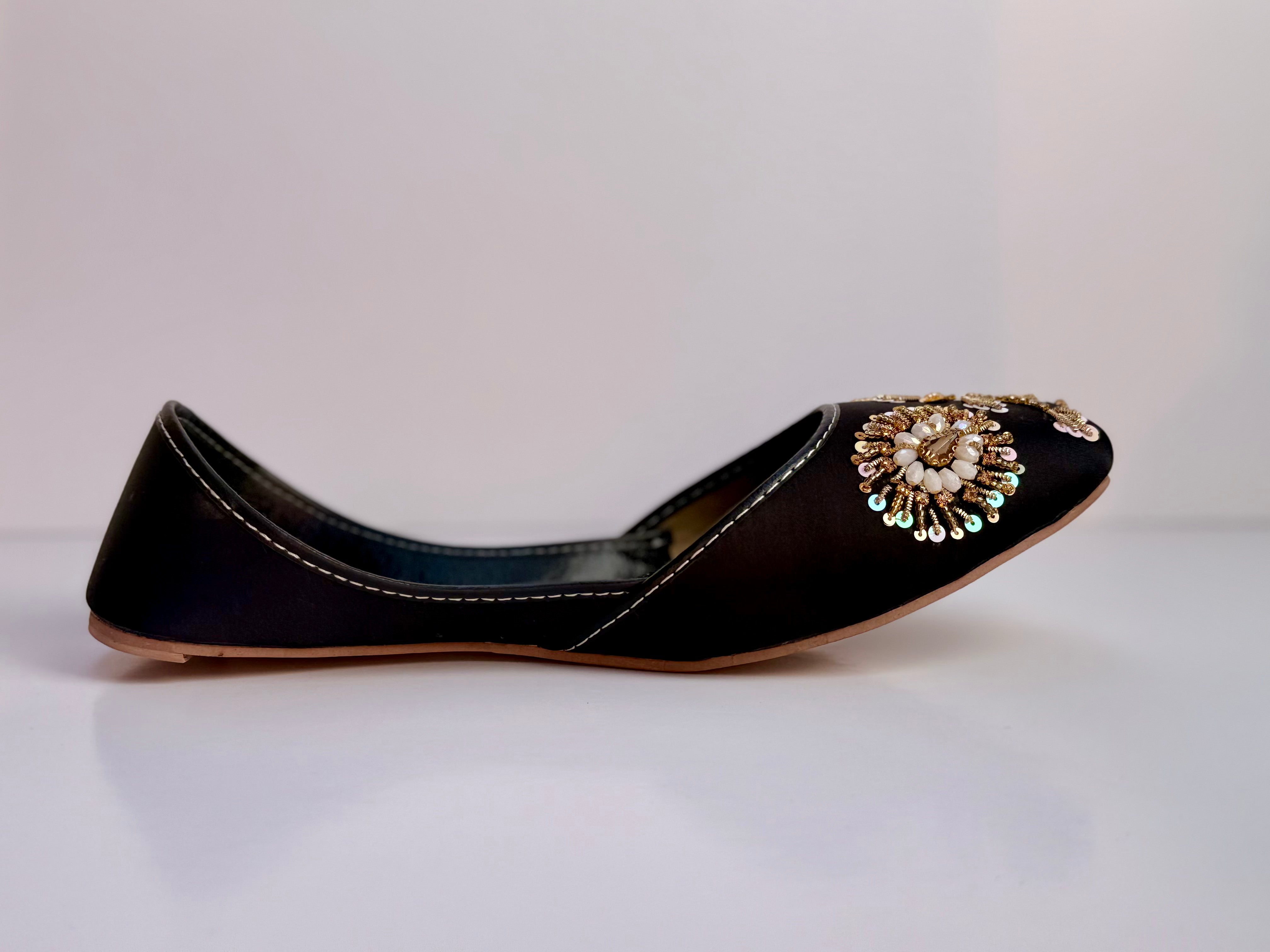 Step into dramatic sophistication with the GULZAAR – Eclipse Khussa, where timeless craftsmanship meets striking design. Each pair is meticulously handcrafted to reflect South Asian heritage with a contemporary edge.