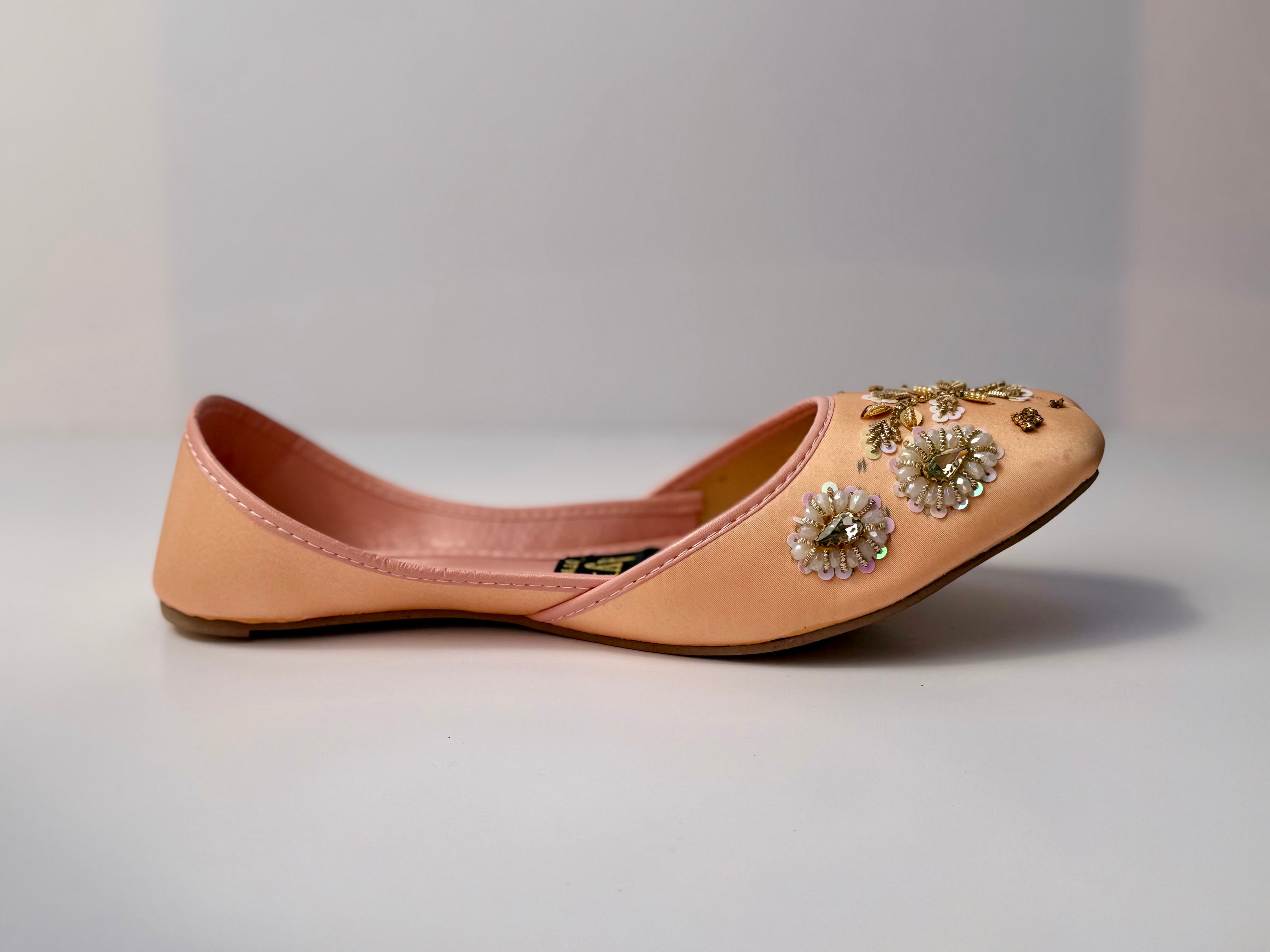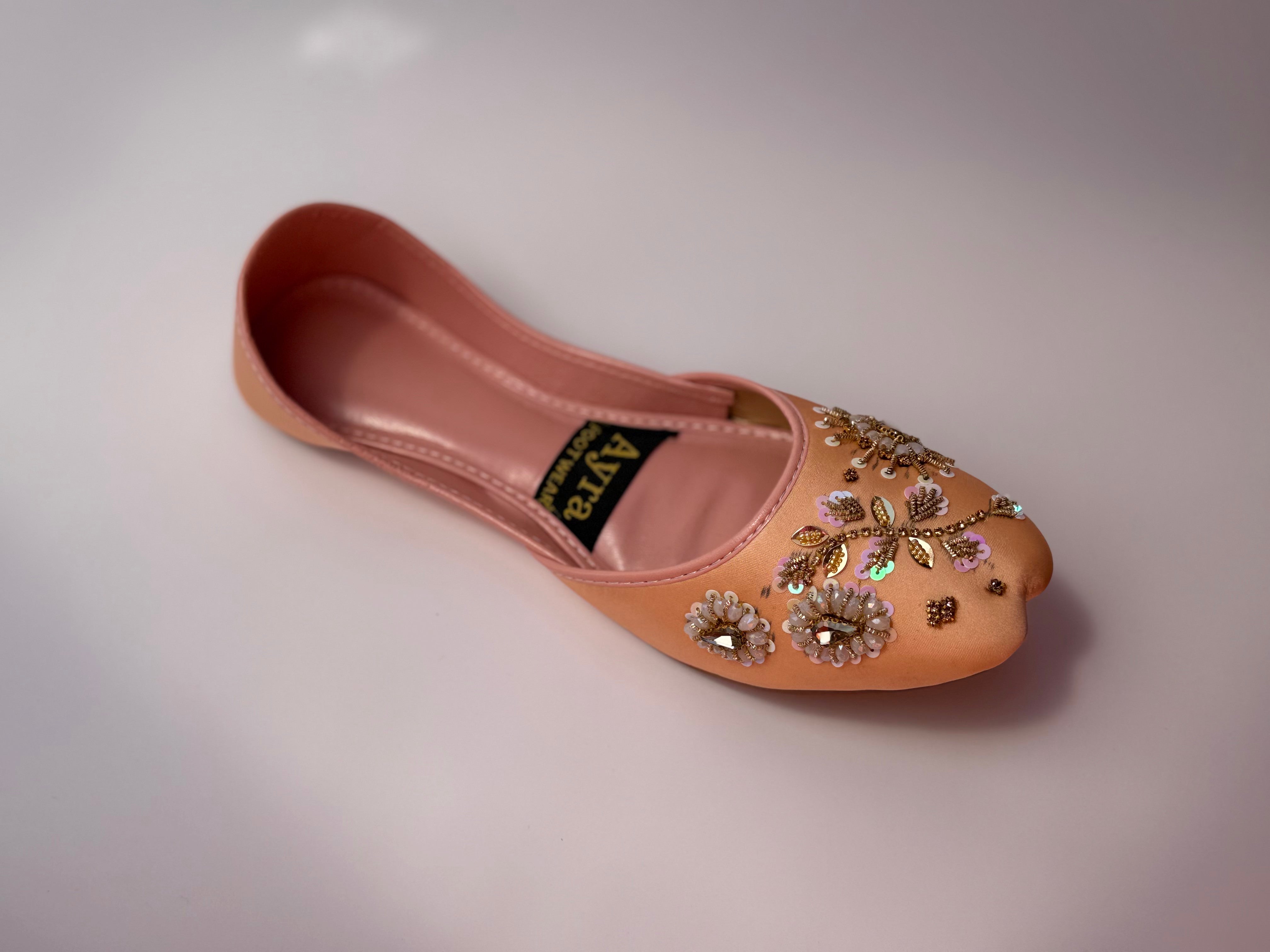 Step into romantic refinement with the GULZAAR β Silk Rose Khussa, a delicate fusion of heritage and modern femininity. Each pair is meticulously handcrafted to reflect timeless artistry and luxurious detail.