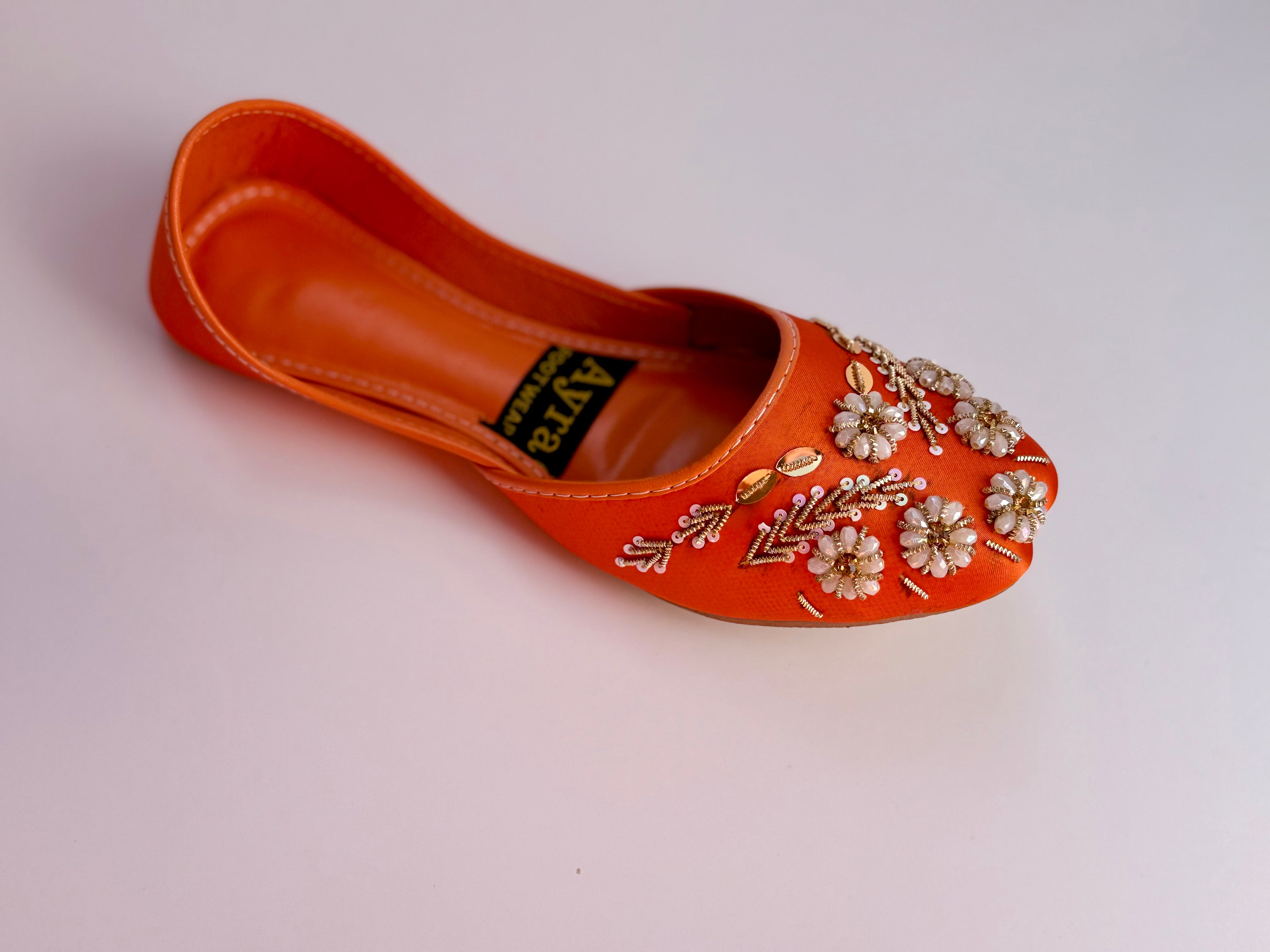 SURKHAAB β Tangerine Khussa with Gold Embroidery and Delicate Beaded Highlights