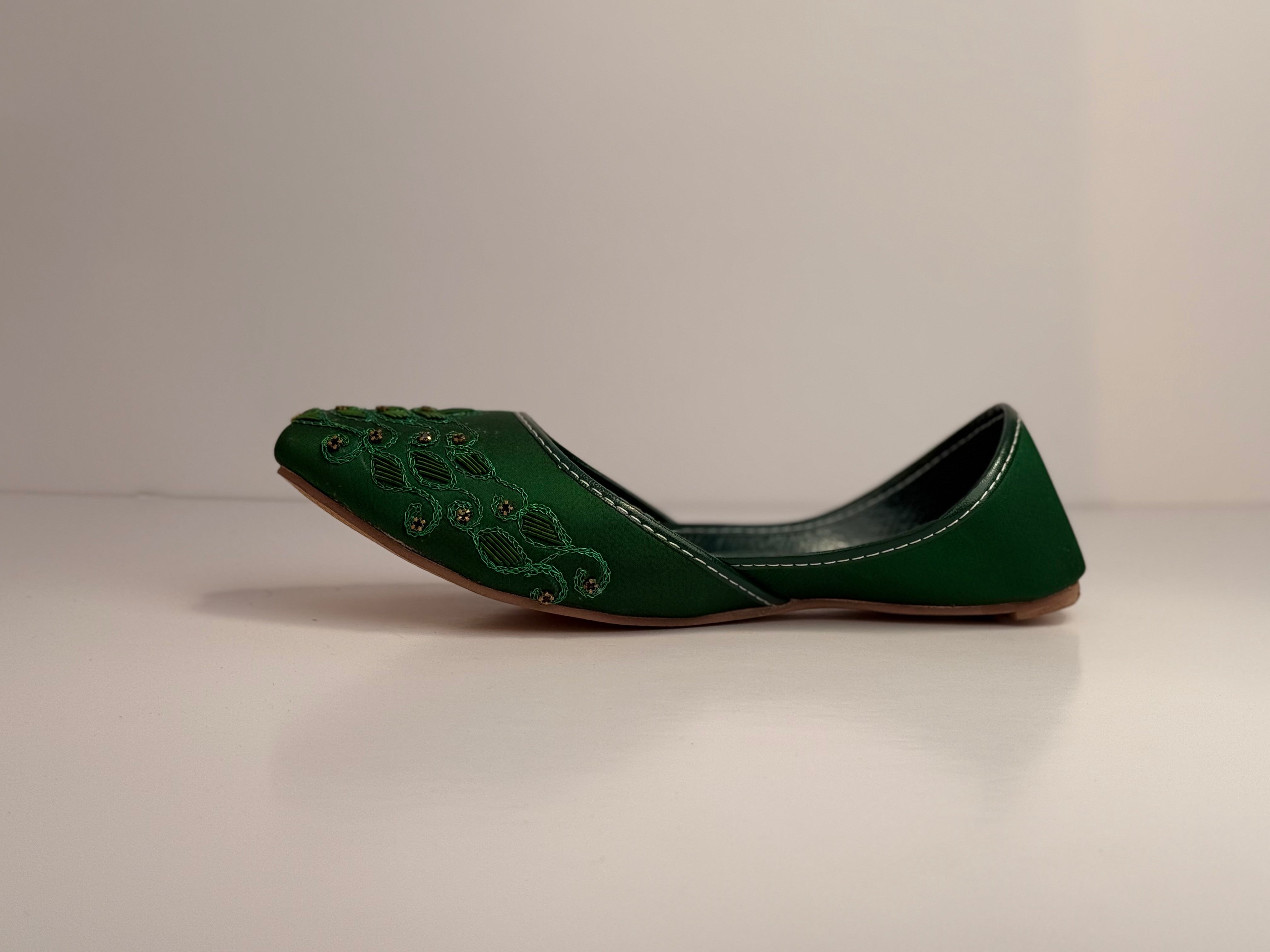 Discover timeless poise with the NAZAKAT – Forest Green Elegance Khussa, a serene blend of earthy tones and artisanal finesse. Each pair is meticulously handcrafted to evoke elegance, comfort, and cultural depth.